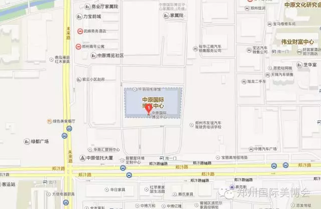 機場高速鄭州南出口下,沿中州大道北行至鄭汴路口向西轉(zhuǎn)上鄭汴路直行1.8公里即至中原國際博覽中心