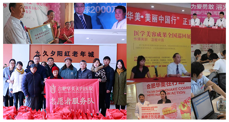 華美自建院以來(lái)一直熱心公益:心系雅安地震,華美愛心捐款;美麗中國(guó)行援助耳部畸形兒童;華美公益救助燒傷母親王阿姨;情系玉樹災(zāi)區(qū)華美愛心公益捐款;"暖冬公益"合肥華美新年敬老慰問(wèn)活動(dòng)等等,受到社會(huì)的認(rèn)可與好評(píng)。
